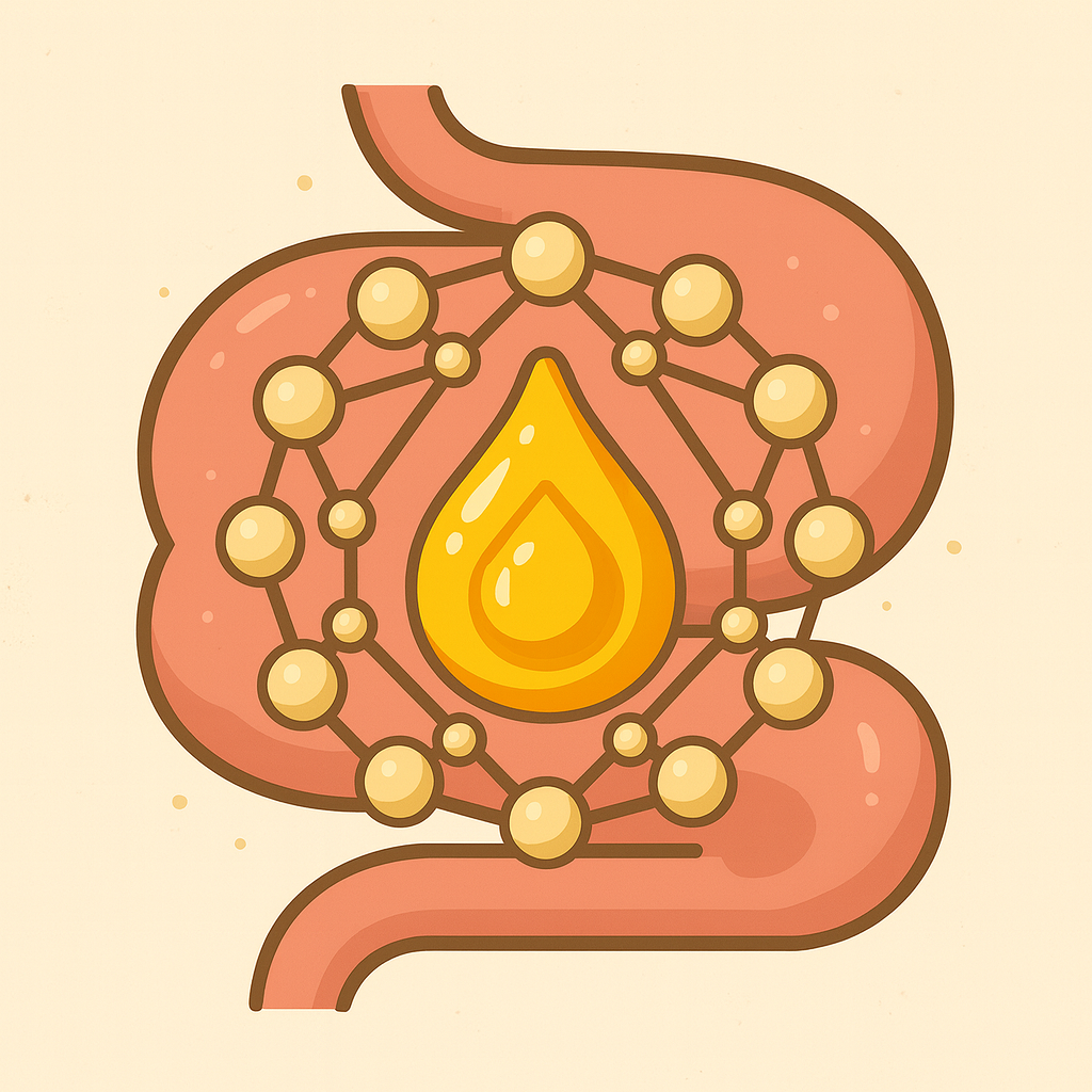 Die besondere Struktur der Matrix wirkt wie ein Puffer. Sie schützt die Nährstoffe vor der aggressiven Magensäure und schleust sie kontrolliert weiter in den Darm. Die gleichmäßige Porenstruktur sorgt dafür, dass die Freisetzung Schritt für Schritt erfolgt – sanft und gut verträglich.