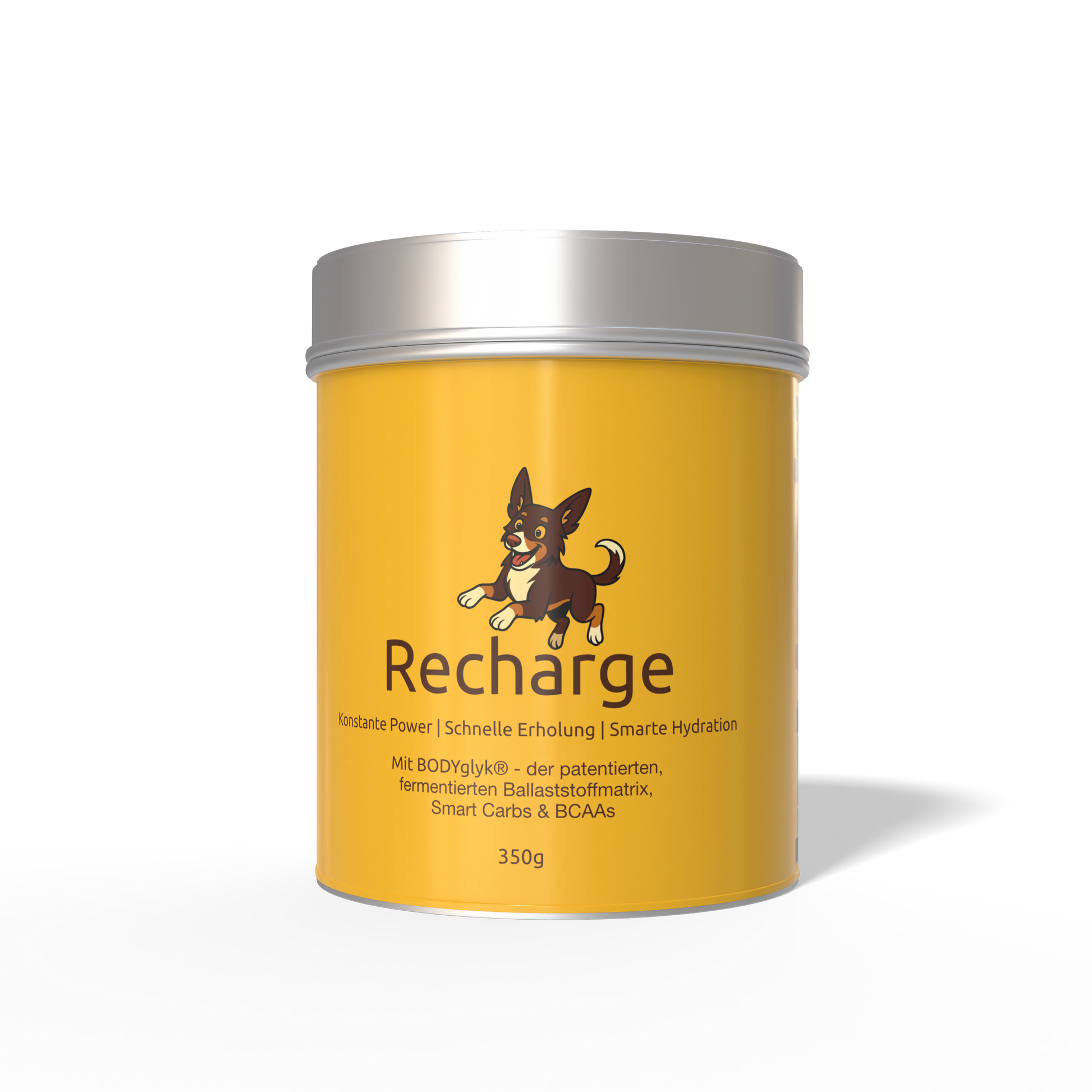 Herr Drop setzt auf Recharge – das erste Hunde-Trinkpulver mit BODYglyk®, der patentierten, zweifach fermentierten Ballaststoffmatrix: gleichmäßige Energie ohne Peaks, magenfreundlich und präbiotisch.